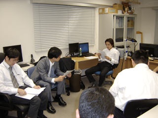貴重なミーティングの時間には活発に意見を交換します